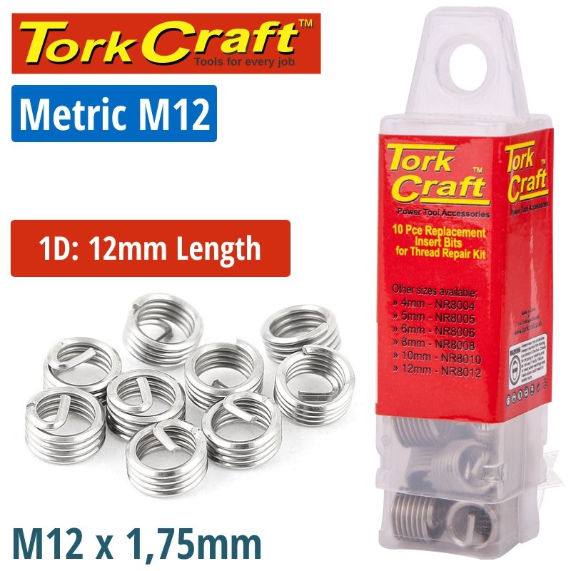 THREAD REPAIR KIT M12 X 1D REPLACEMENT INSERTS 5PCE