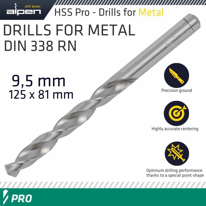 ALPEN PRO HSS 9.5MM DRILL DIN 338 RN 135 SPLIT POINT PLASTIC WALLET