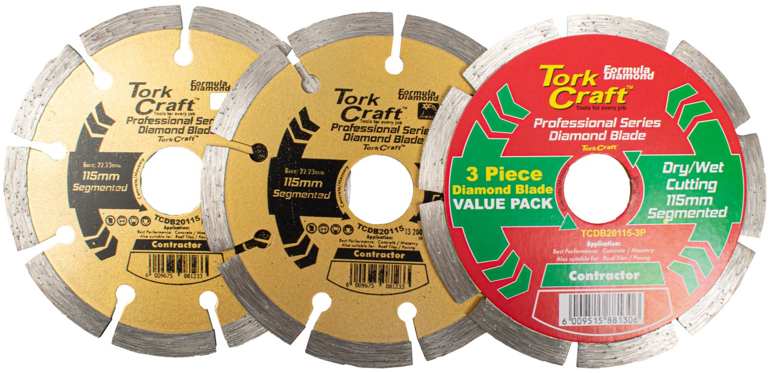 DIAMOND BLADE SEGMENTED 115MM PROFESSIONAL BULK 3 PACK SHRINK