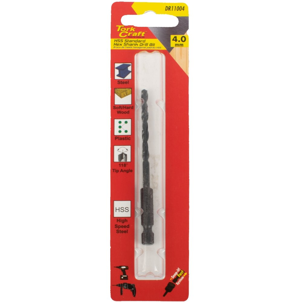DRILL BIT HSS STANDARD 4.0MM HEX SHANK 1/CARD