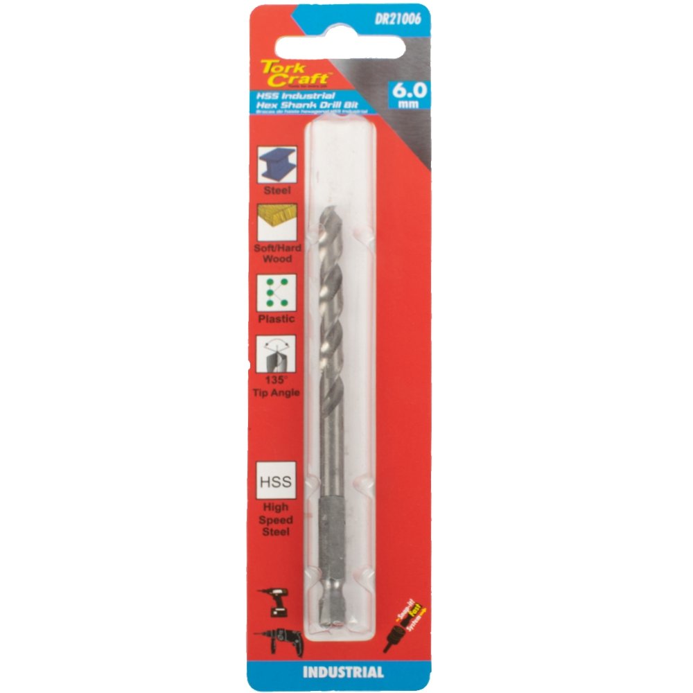 DRILL HSS 6.0MM 135DEG 1/CARD HEX SHANK INDUSTRIAL BIT