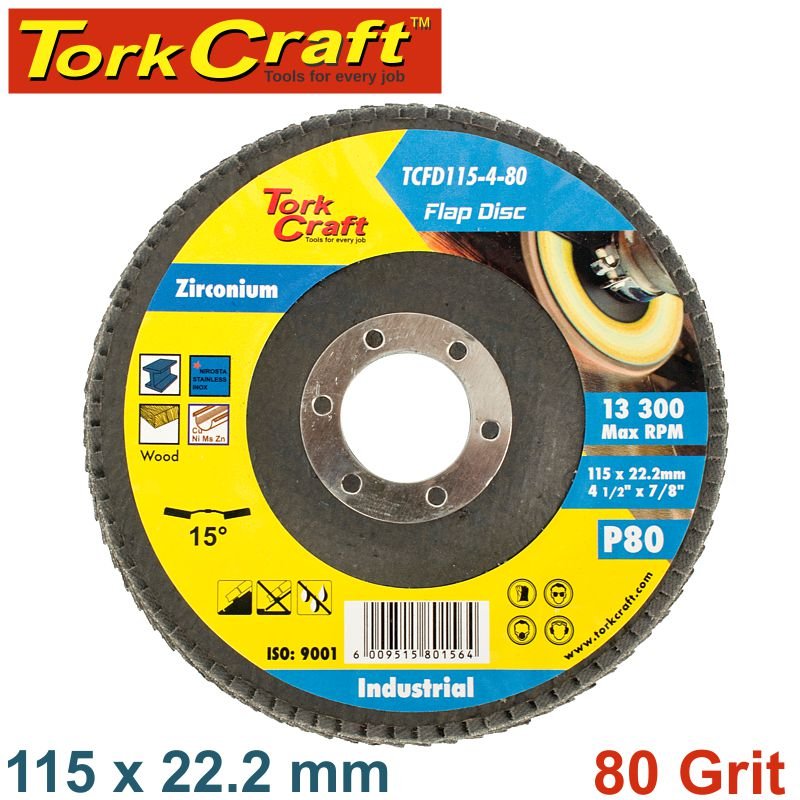 FLAP DISC ZIRCONIUM 115MM 80GRIT ANGLED