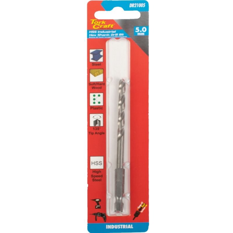 DRILL HSS 5.0MM 135DEG 1/CARD HEX SHANK INDUSTRIAL BIT