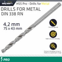 ALPEN PRO HSS 4.2MM DRILL DIN 338 RN 135 SPLIT POINT PLASTIC WALLET (