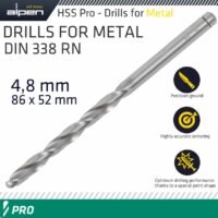 ALPEN PRO HSS 4.8MM DRILL DIN 338 RN 135 SPLIT POINT PLASTIC WALLET (